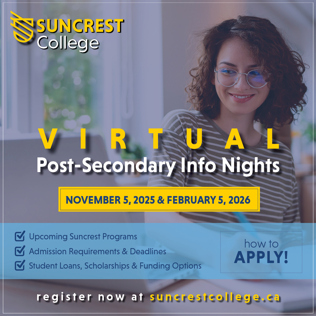 Suncrest College will be hosting an online info session at 7PM on Wednesday, November 5th. This presentation will be aimed at parents, though high school staff and students are also welcome to ...